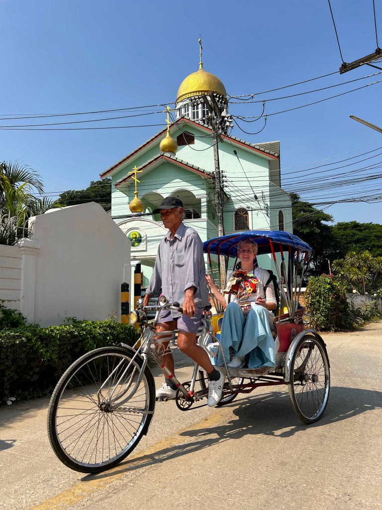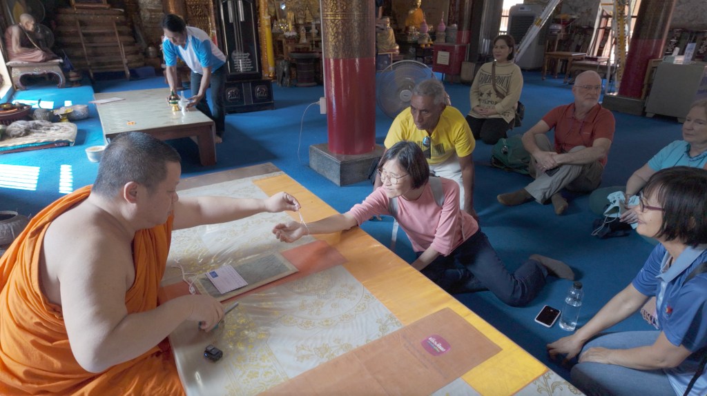 Here, it is common to visit nine temples in a single day to gain merit, a practice known as « ไหว้พระ 9 วัด » (Wai Phra Kao Wat). This tradition honors the Buddha in multiple places and aims to ทำบุญ (tamboon), the accumulation of merit. Our approach was same same but different: by connecting various places of faith, we were not seeking blessings as much as celebrating diversity and weaving bonds of unity across spiritual traditions.