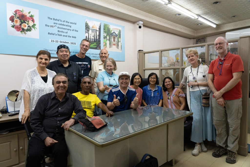 Then, we arrive at Shiraz Jewelry, owned by the pioneering Bahá’í couple of Chiang Mai. Maliheh and Nasser settled here over fifty years ago to support the city’s emerging Bahá’í community. Lea welcomes us with music, her guitar accompanying the words of Blessed is the spot and the house and the place… Then, in a beautiful spirit of unity in diversity, prayers are recited in English, Persian, and Thai. On the table, fresh fruits await us—a welcome offering in the heat of the afternoon.