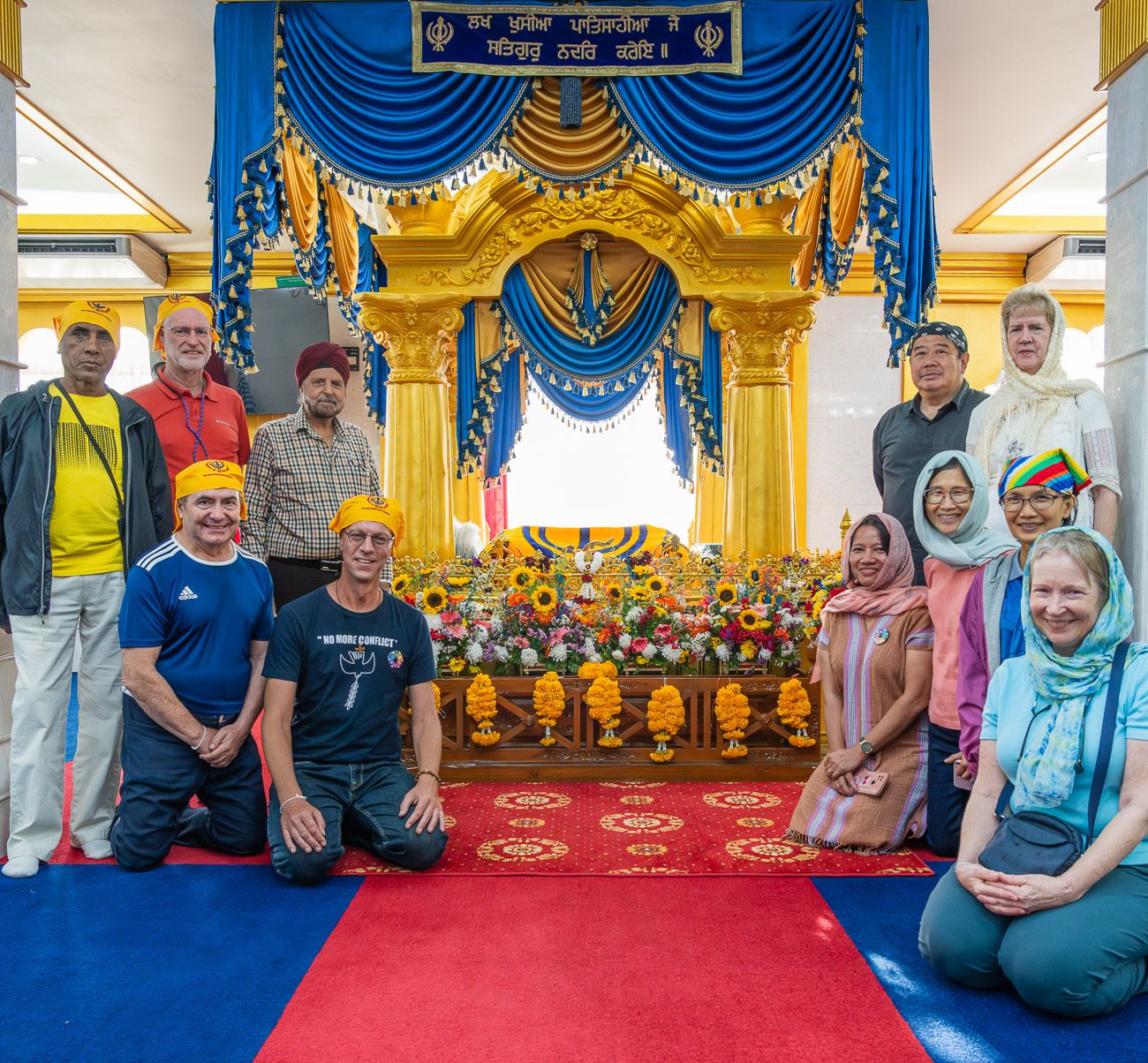 We walk through Kad Luang, the grand market, then cross the historic Khua Khaek pedestrian bridge. We arrive late at the Sikh Gurudwara, but Frank welcomes us warmly, leads us to the top floor, and offers us a blessing in the Sikh tradition. Unexpectedly, he also asks us to pray for him. « I have prayed for you; please, I would like someone to pray for me. » A beautiful example of reciprocity.