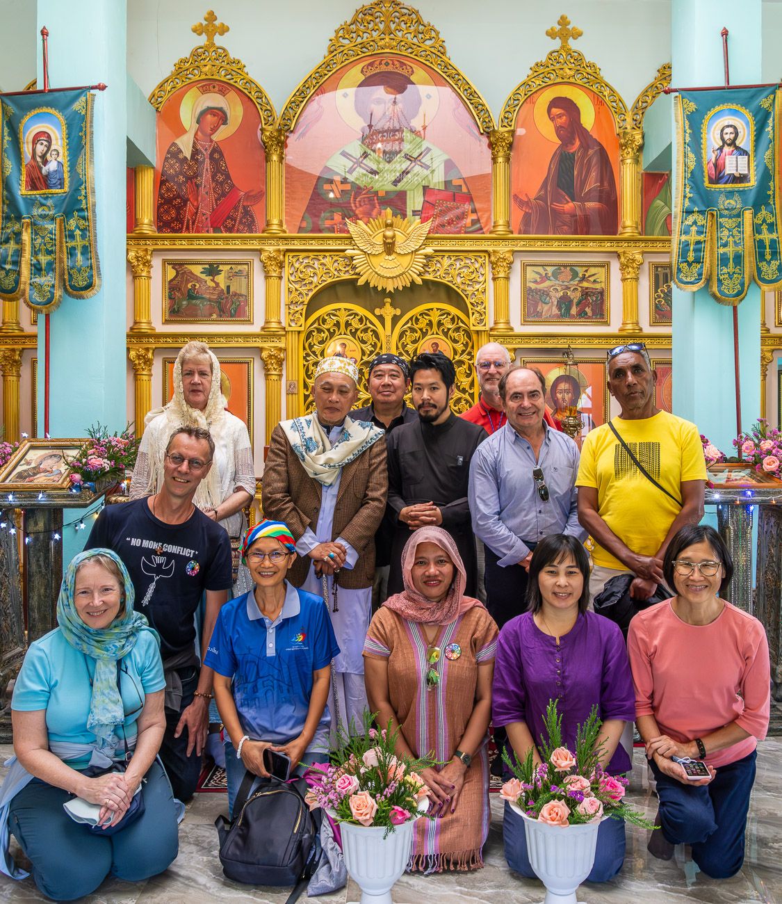 We arrive at Al Jamiah Mosque, where Ajarn Jirachai, accompanied by a young Malaysian, welcomes us warmly. We step inside for a Muslim prayer. Then, Ajarn Jirachai invites us to make a short detour to his home. We would be tempted to stay—the steaming samovar is enticing—but we are expected at St. Vladimir Orthodox Church.